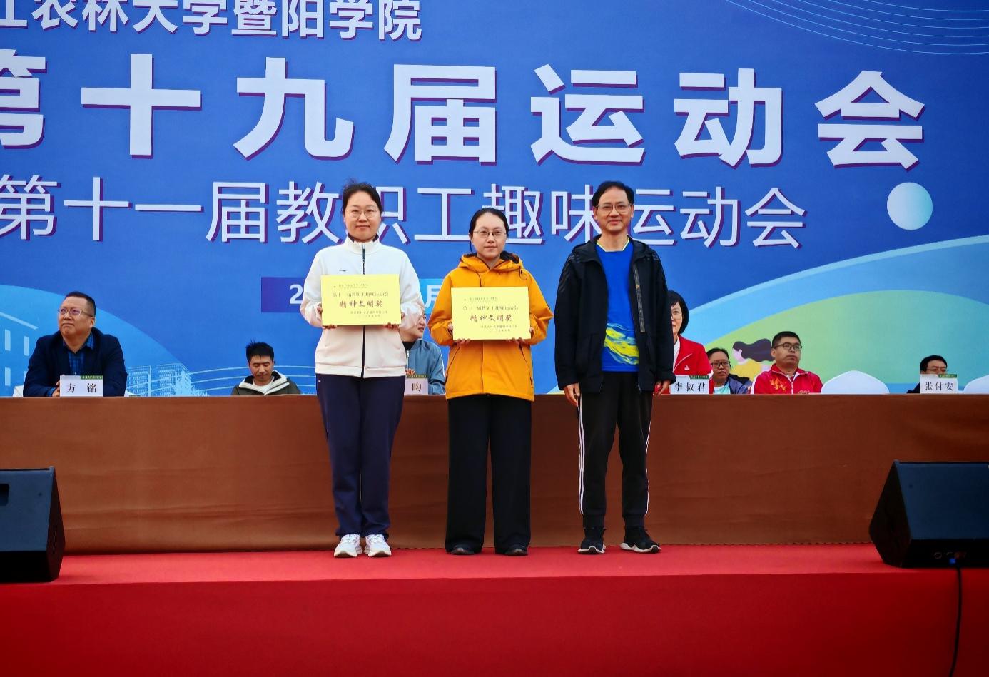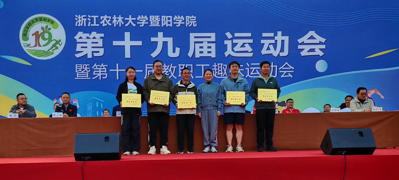 本届运动会工程技术学院代表队、生物环境学院代表队、机关第一代表队、园林学院代表队和机关第二代表队分别获得教职工趣味运动会团体总分前五名,人文学院、马克思主义学院代表队和晨晓艺术与设计学院代表队获精神文明奖。